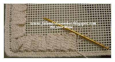 Eu fiz uma a uma cada fileirinha. Por isso os pontos ficaram muito juntos. Sugiro que pule uma carreira para que ele fique mais maleável. O meu ficou muito firme. Uma coladinha na outra e esse não era meu objetivo. Farei outra como estou te sugerindo agora.